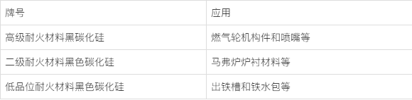 表1黑色碳化硅的牌號(hào)及其應(yīng)用